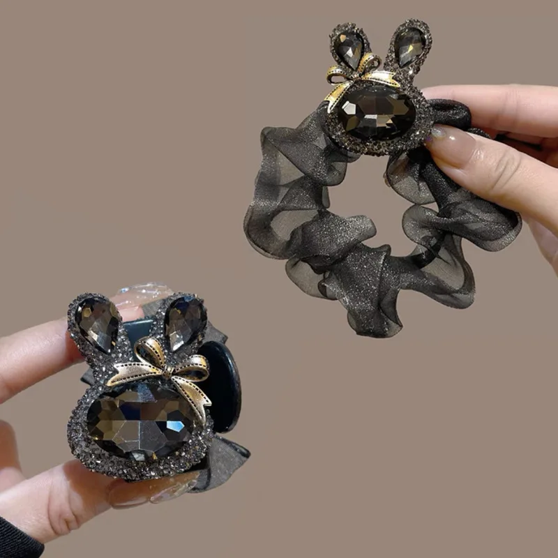 Rhinestone rabbit scrunchie Premium hair cord High elastic elastic hair cord