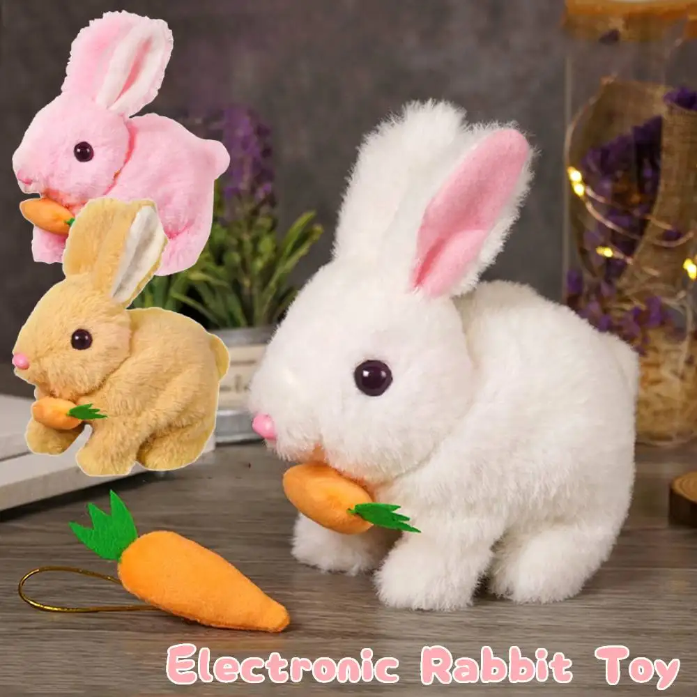 Simulation Electric Rabbit Pet Toy with Sound Walking Wiggle Ears Stuffed Rabbit Toys Interactive Plushies Birthday Gift for Kid