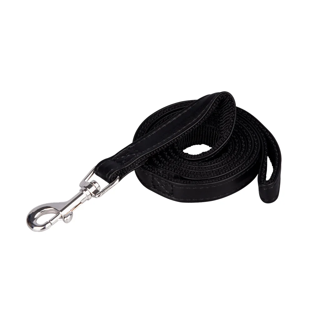Size 120cm Pet Leashes PU Leather Padded Nylon Dog Training Rope Leads For Dog Cat Walking Puppy Leash Blue Black Red Pink