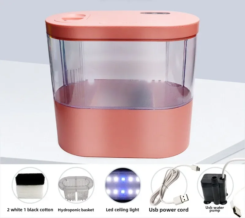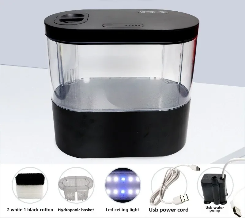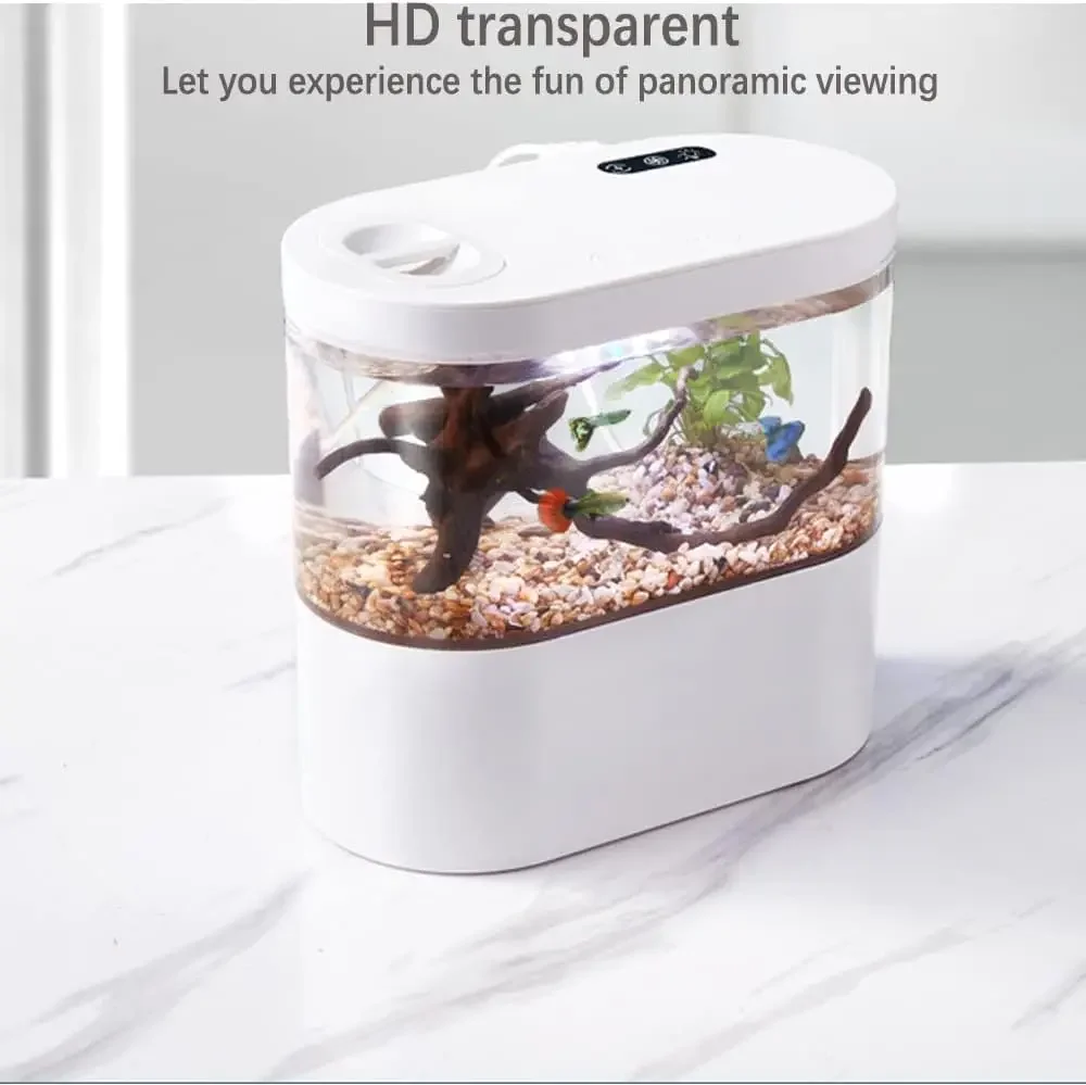 USB Mini Desktop Aquarium Fish Tank with Biochemical Filtration System LED Light Betta Fish Ecological Water Cycle Goldfish Tank