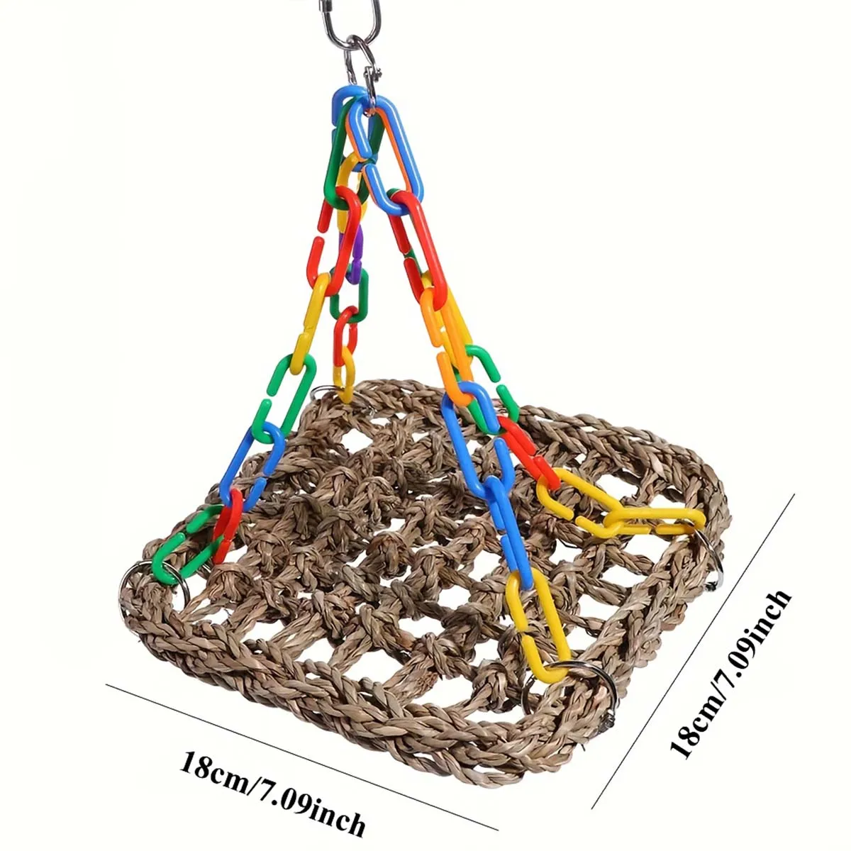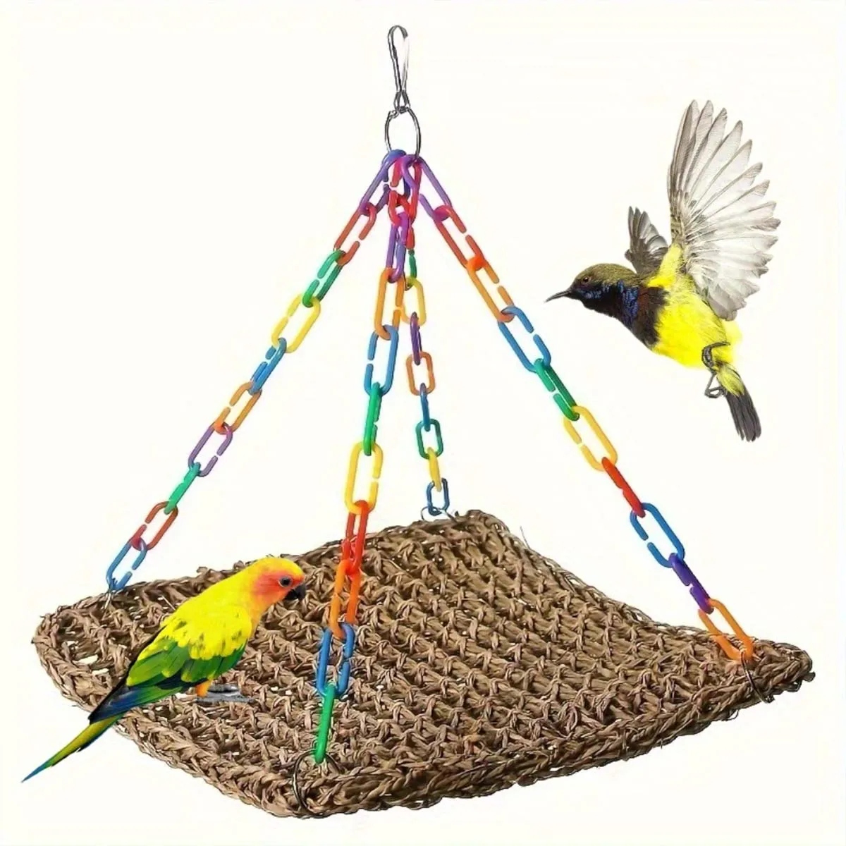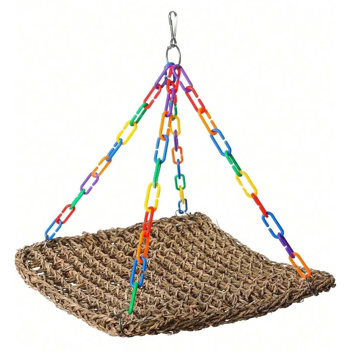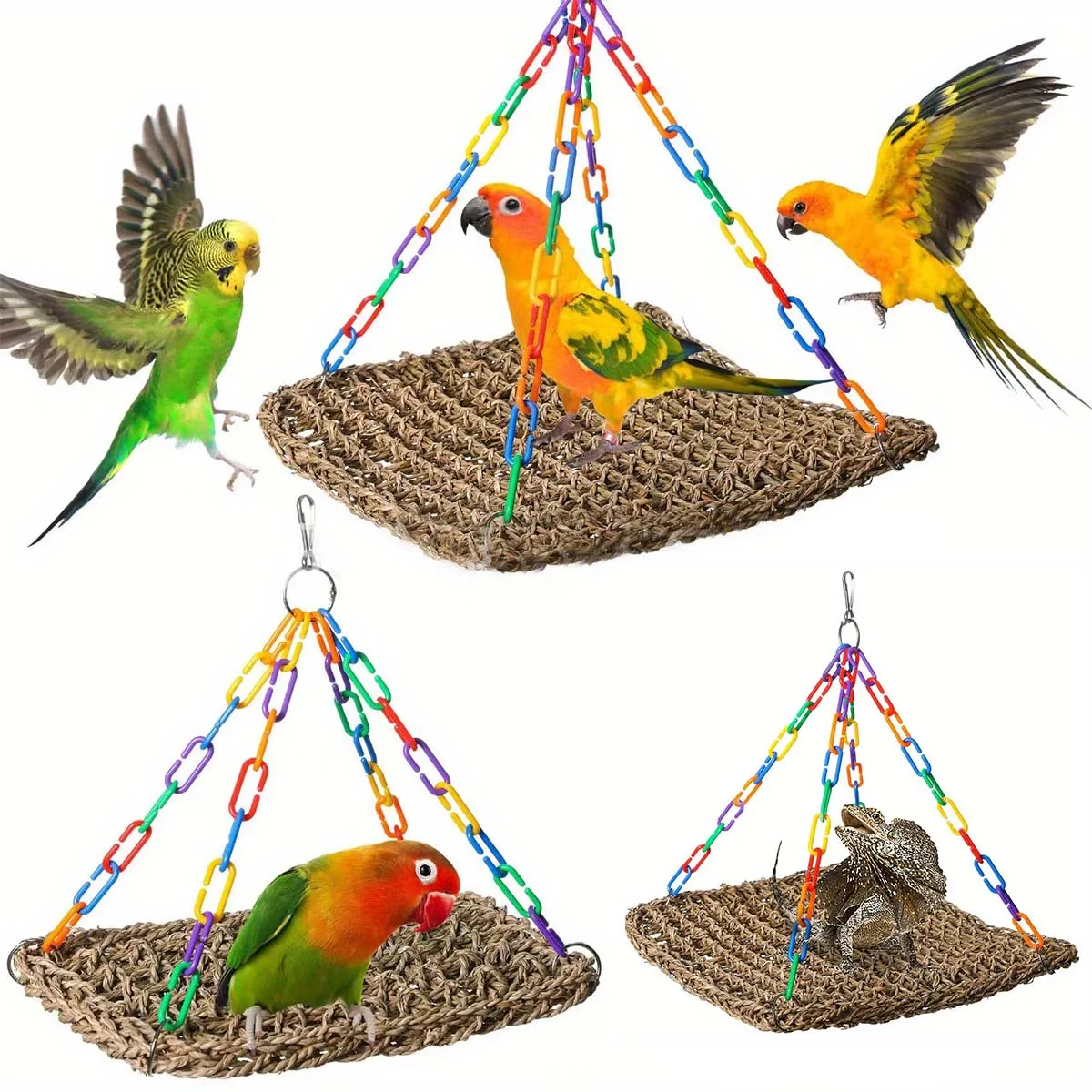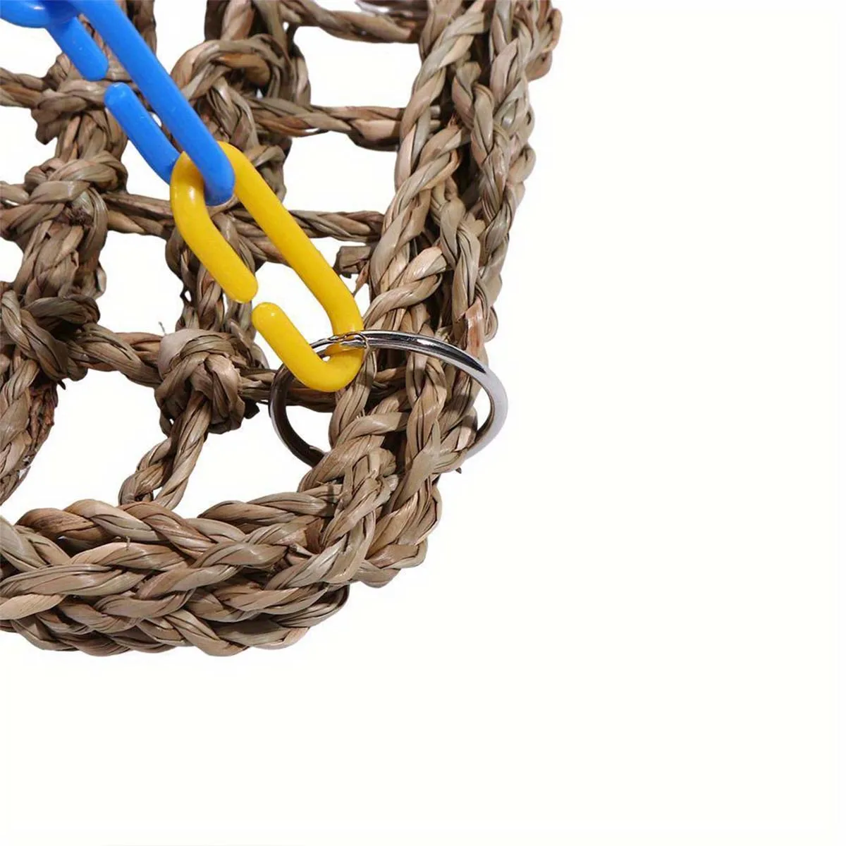 Woven Bird Hammock Woven Grass Bird Hammock Toy Adjustable Chain Ring Comfortable Rocking Toy Bird Accessories For Parrot & Bird